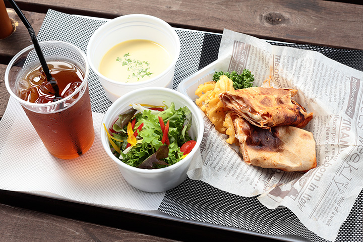 ワンハンドピザ(サラダ・スープ・ソフトドリンクセ
